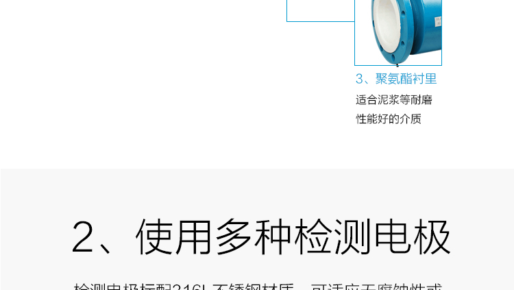 c、為適應(yīng)不同介質(zhì)測量的要求,傳感器的襯里和電極材料可以有多種選擇。