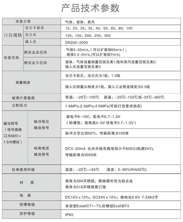 測量介質:液體、一般氣體、天然氣、蒸汽(飽和蒸汽和過熱蒸汽);