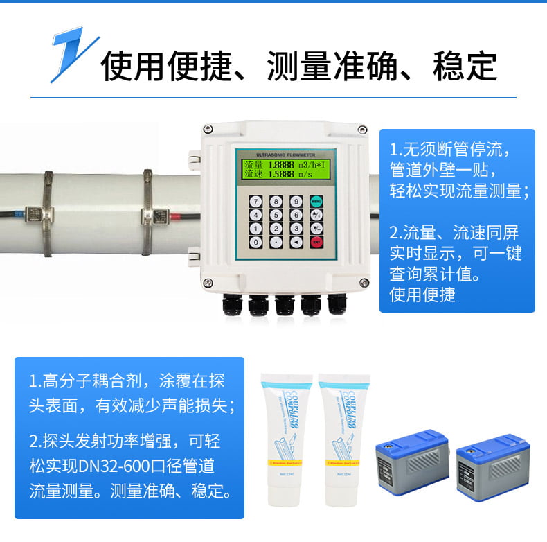 外夾式超聲波流量計(jì)是采用進(jìn)口集成電路貼裝而成,電路全部完成數(shù)字化、集成化,提高測(cè)量精度、測(cè)量穩(wěn)定性、大大減少了故障維護(hù),是目前****技術(shù)、性能zui穩(wěn)定、安裝zui方便的一款低功耗流量測(cè)量?jī)x表,根據(jù)多年的經(jīng)驗(yàn)總結(jié),以及產(chǎn)品的不斷更新?lián)Q代,目前新版本的超聲波流量計(jì)其功能**、運(yùn)算速度快、抗干擾能力強(qiáng),周期采樣次數(shù)高達(dá)128次,**應(yīng)用于工業(yè)現(xiàn)場(chǎng)中的各種液體流量的在線計(jì)量。