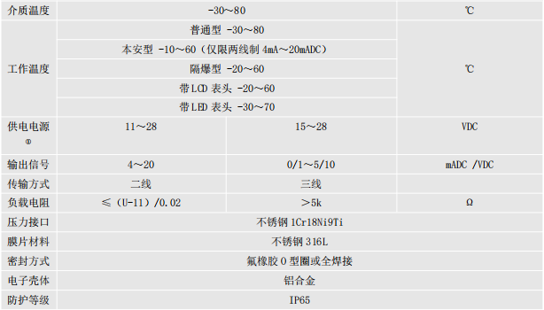 6、與介質接觸部分為不銹鋼,具有齊平膜片、鉭膜片等特殊形式;