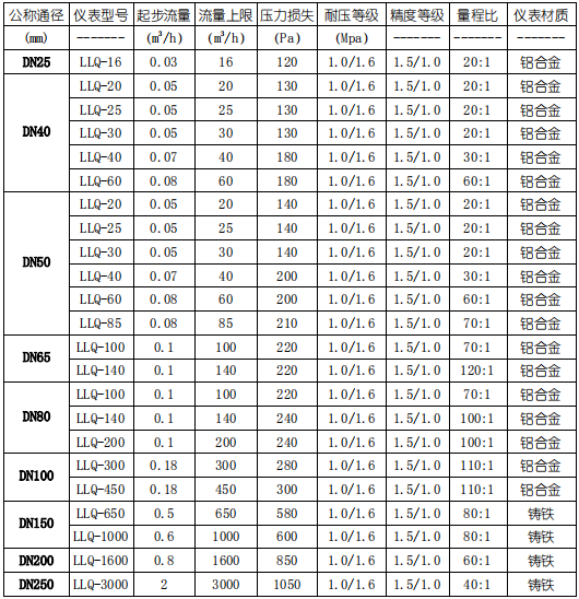 3、始動流量小,量程比寬,適合于計(jì)量符合變動大的氣體流量。