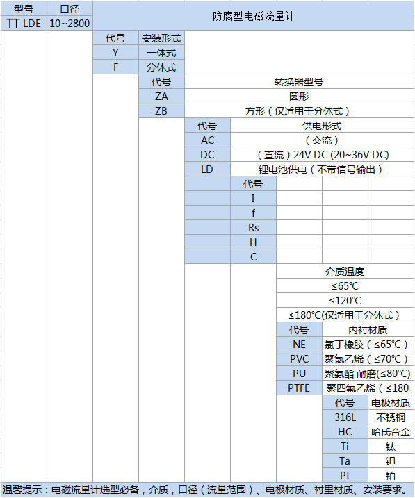 溫馨提示:硫酸流量計選型必備,介質(zhì),口徑(流量范圍)、電極材質(zhì)、襯里材質(zhì)、安裝要求。