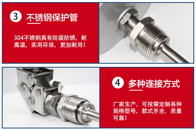 5、在保管、使用安裝及運輸中,應避免碰撞保護管,切勿使保護管彎曲變型,更不能將表當扳手使用。