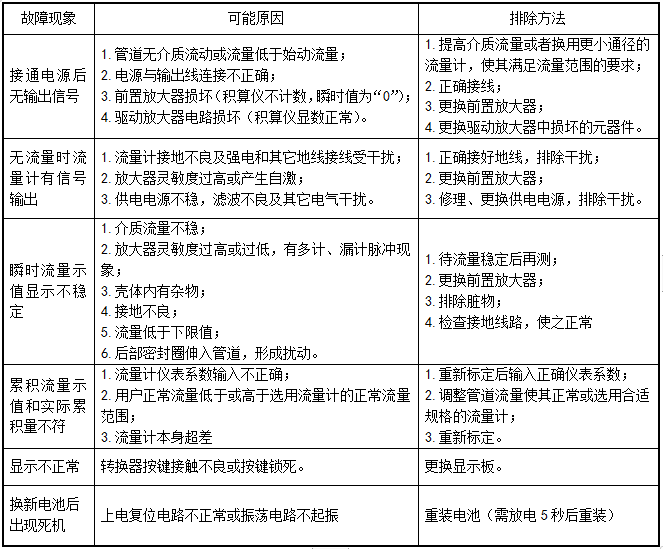七、旋進(jìn)旋渦流量計(jì)常見故障現(xiàn)象及排除方法
