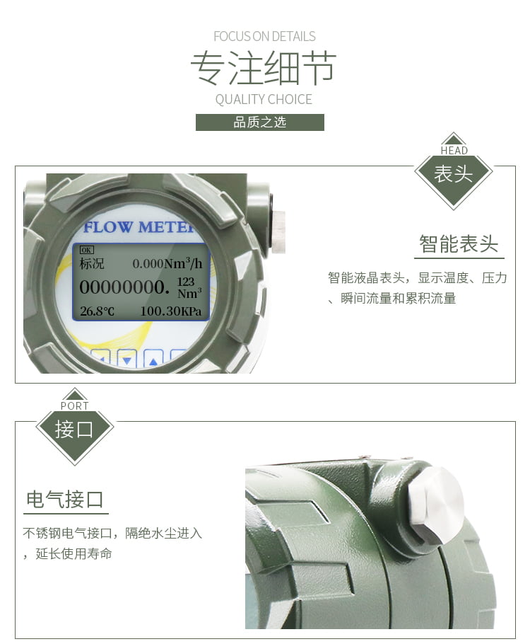 智能旋進(jìn)旋渦氣體流量計采用**的微處理技術(shù),具有功能強、流量范圍寬、操作維修簡單,安裝使用方便等優(yōu)點,主要技術(shù)指標(biāo)達(dá)到國外同類產(chǎn)品的**水平???*應(yīng)用于石油、化工、電力、冶金、煤炭等行業(yè)各種氣體的計量。