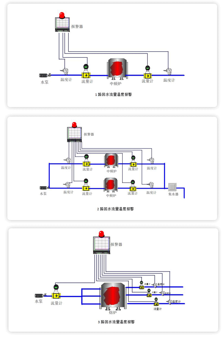 流量差報警儀主要應(yīng)用于電爐水路報警范疇,主要功用是監(jiān)測顯現(xiàn)進(jìn)水流量、出水流量、進(jìn)水壓力、出水壓力、進(jìn)水溫度、出水溫度、進(jìn)出水流量差值,這幾個參量。經(jīng)過數(shù)字監(jiān)測,反響出電爐水路的流量、溫度、壓力相關(guān)的值的變化,一旦報警,報警安裝會發(fā)出刺耳的聲光報警,以到達(dá)對電爐水路停止實(shí)時監(jiān)測的效果。