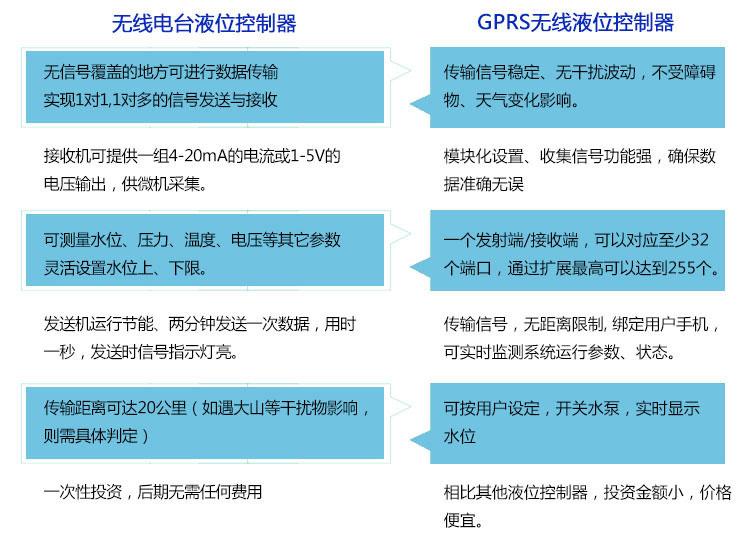 無(wú)線液位控制報(bào)警器主要分為無(wú)線電臺(tái)式和4G GPRS模式兩種。