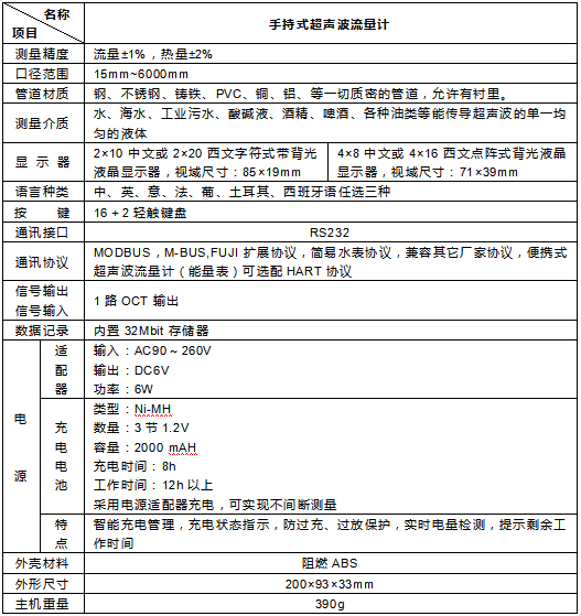 三、手持式超聲波流量計(jì)主要技術(shù)參數(shù)