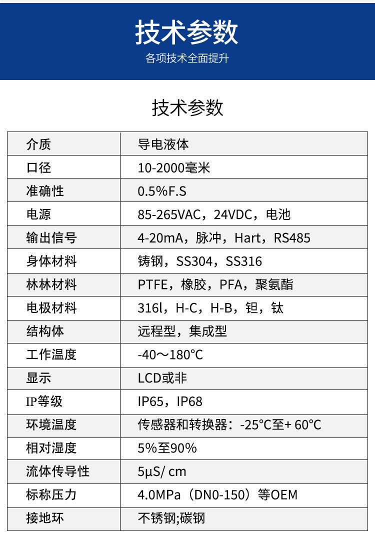 測量介質(zhì):電導(dǎo)率大于5μS/cm的各種液體和液固兩相流體;